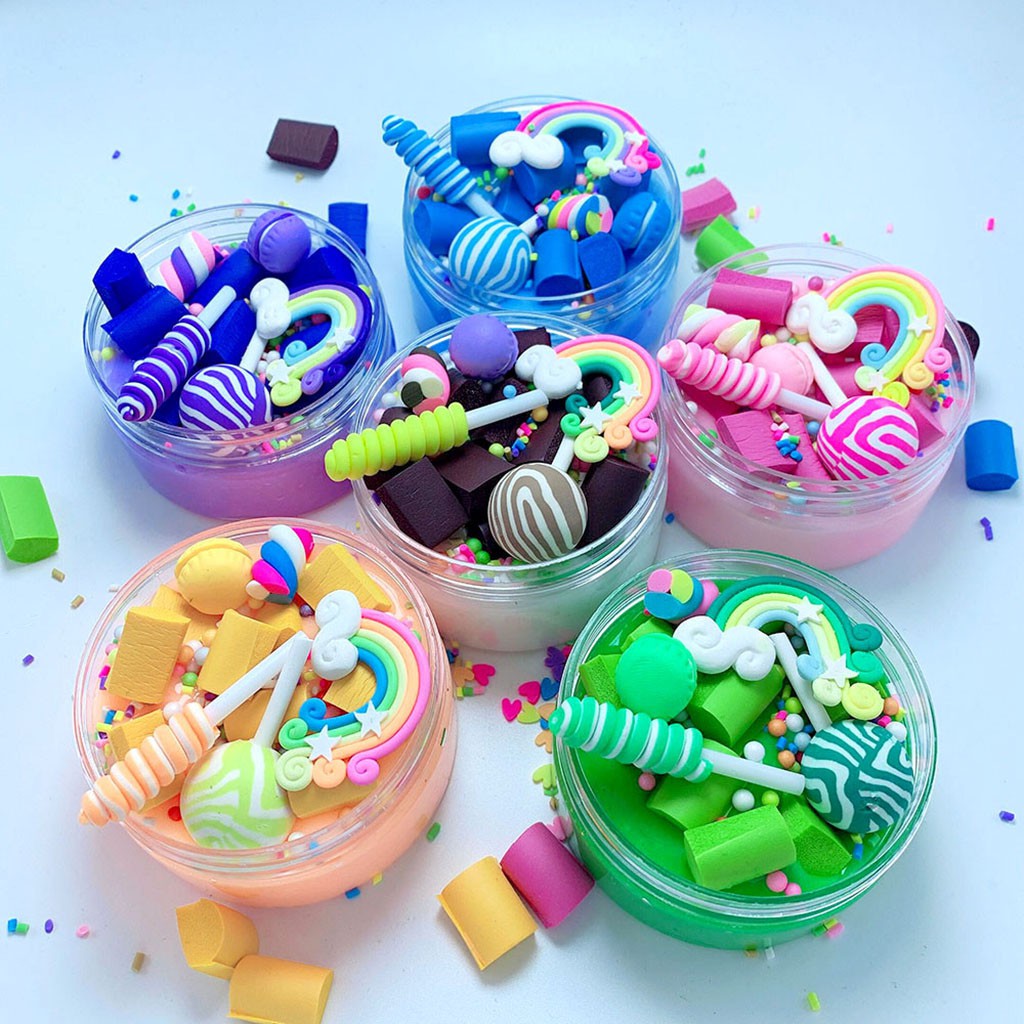 Rainbow Charms Clear Slime Beautiful Color Lollipop Slime Kids Relief Stress Toy | Shopee Philippines