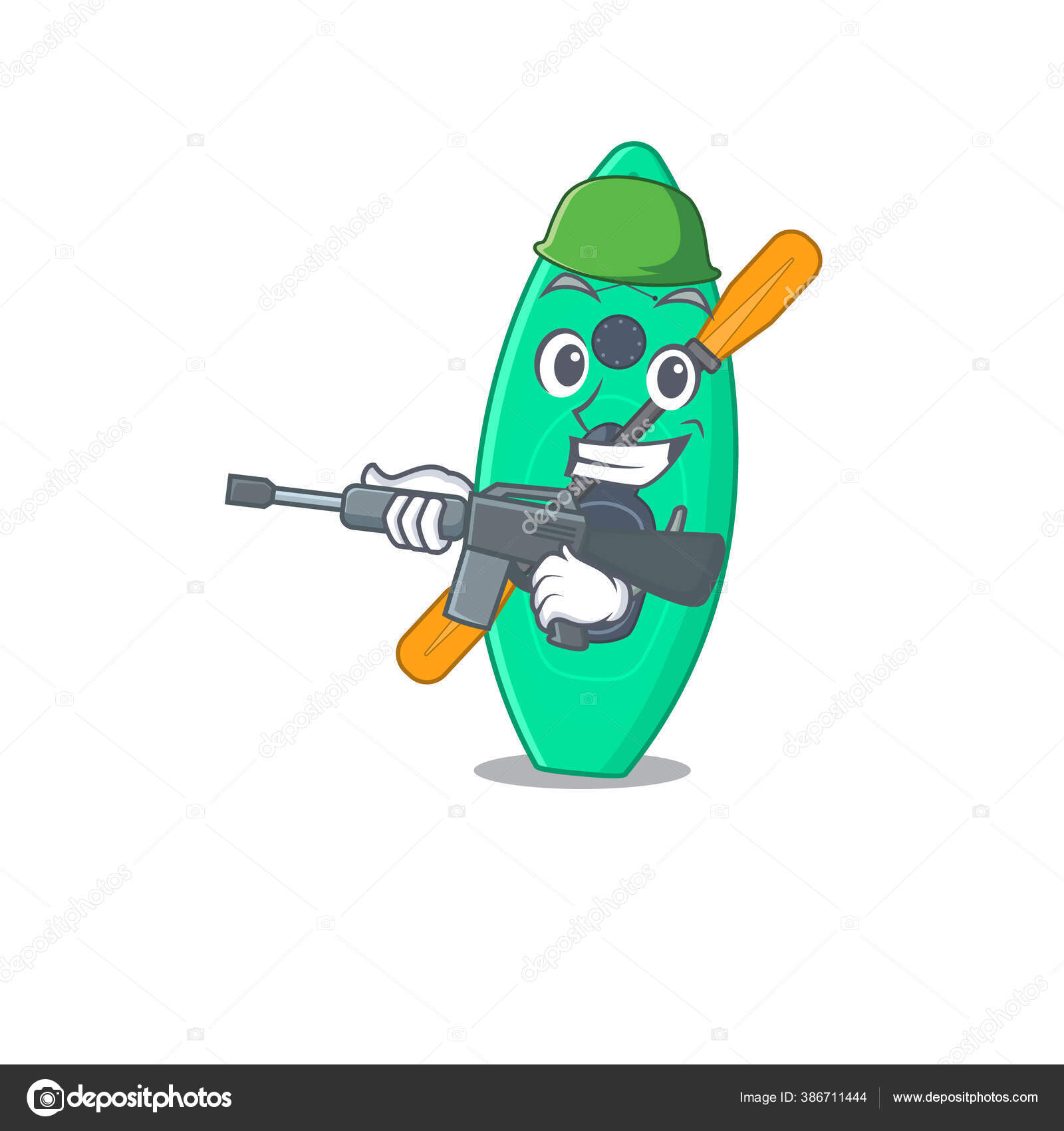 Sebuah militer menarik kartun gaya gambar memiliki senapan mesin Stok Vektor © kongvector #386711444