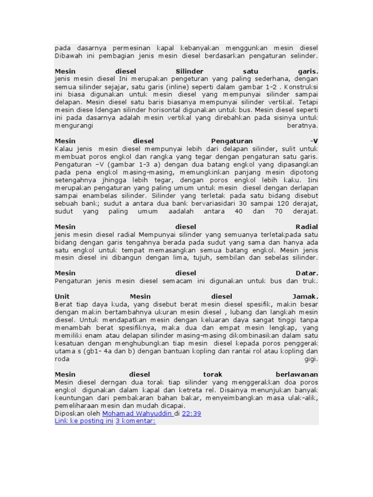 Permesinan Kapal Dan Jenis Jenis Mesin Diesel