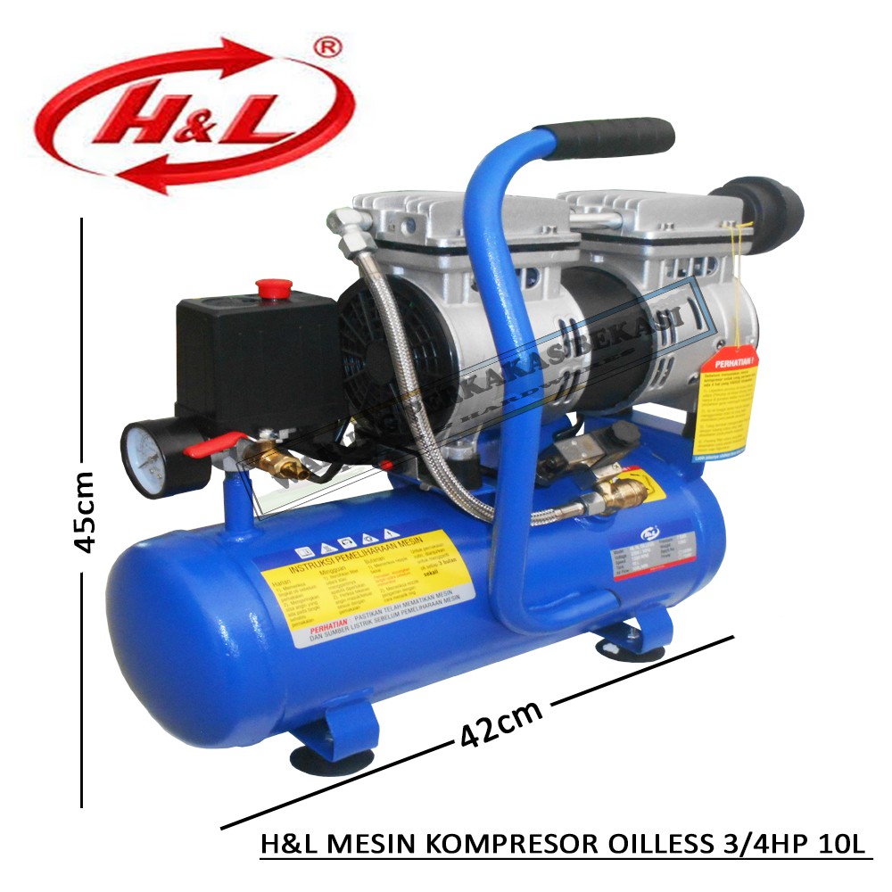 H&L Air Compressor Mini Oilless 0.75 HP Tangki 10 Liter Mesin Kompresor Listrik Silent Suara Adem | Shopee Indonesia
