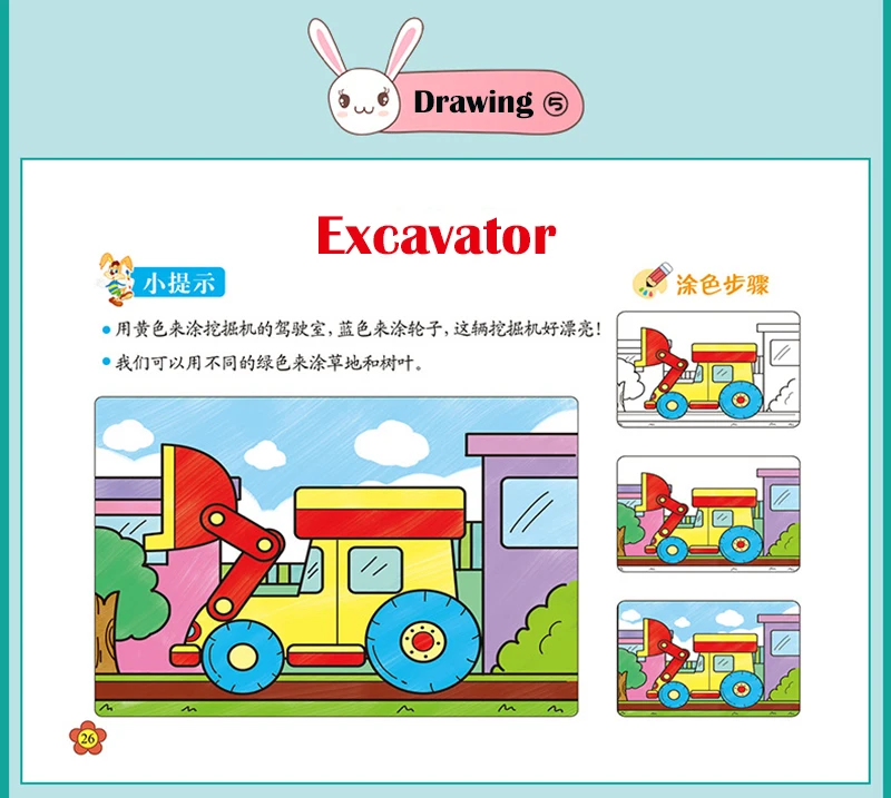 cara menggambar dan mewarnai excavator untuk anak-how to draw for kids | Hello kitty, Buku mewarnai, Gambar