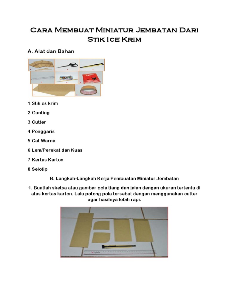 Cara Membuat Miniatur Jembatan (Bagian-Bagian, Alat dan Bahan, Teknik dan Cara Membuat Miniatur Jembatan)