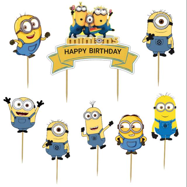 topper toper hiasan kue cupcake cup cake ulang tahun happy birthday karakter minion minions | Shopee Indonesia