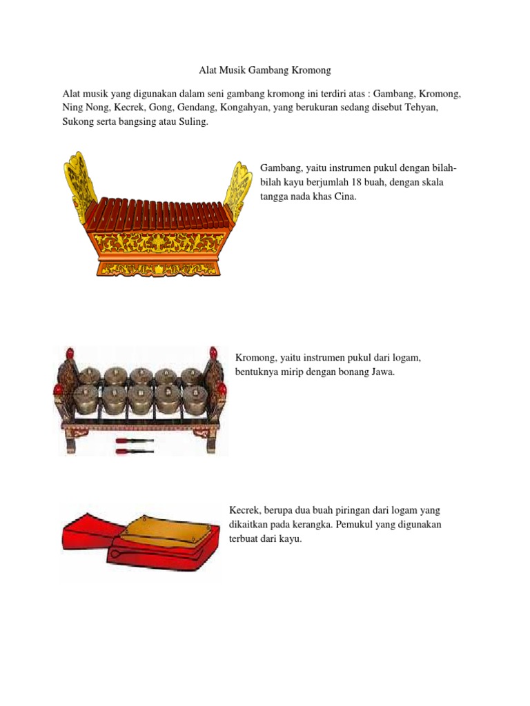 gambang kromong adalah alat musik dari betawi yg banyak memainkan lagu2 bertangga nada - Brainly.co.id