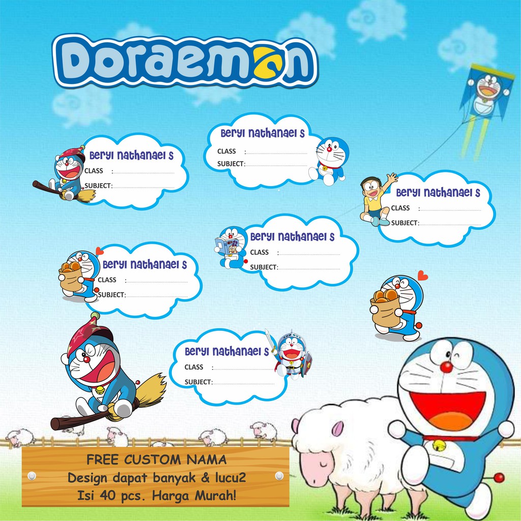 STICKER NAMA / STIKER BUKU DORAEMON / STIKER LABEL CUSTOM | Shopee Indonesia