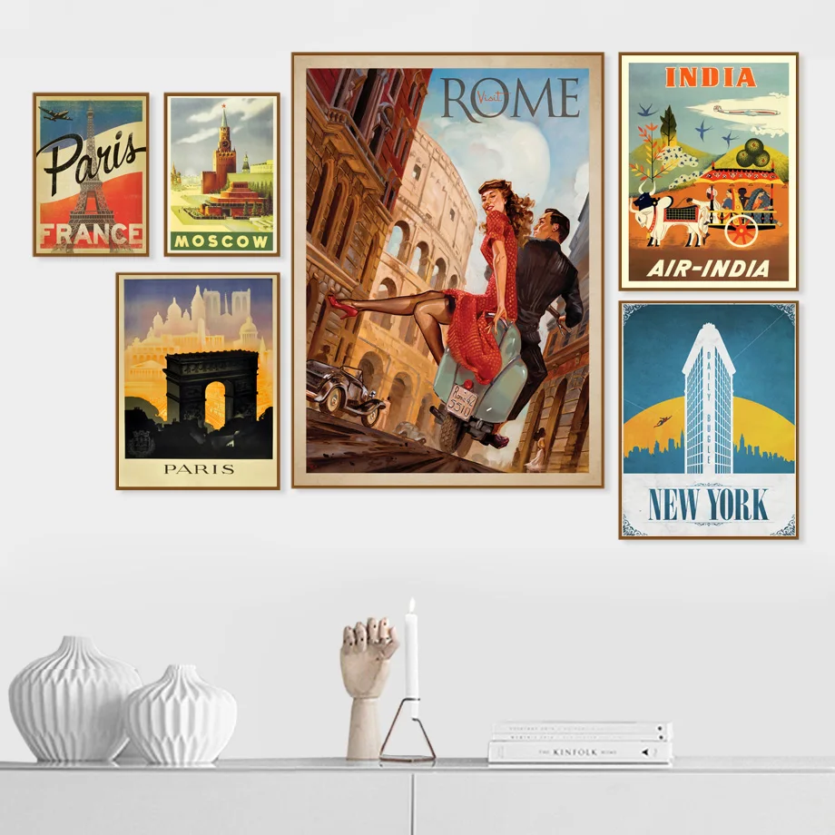 Roma Paris New York India Vintage Negara Dinding Seni Lukisan Kanvas Nordic Poster dan Cetakan Dinding Gambar untuk Ruang Tamu dekorasi|Painting & Calligraphy| - AliExpress