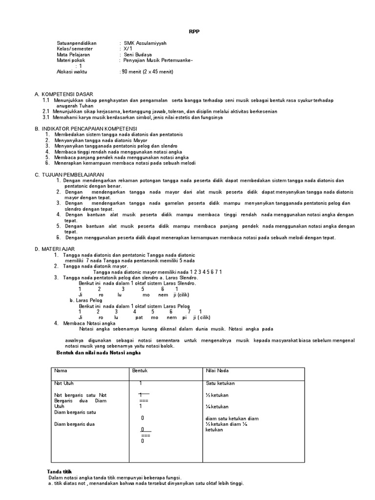 RPP Seni Budaya _musik _Kelas X Sem 1