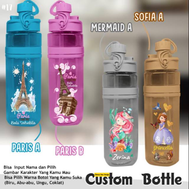 Botol Minum Custom Paris , Mermaid , Princess Sofia | Shopee Indonesia