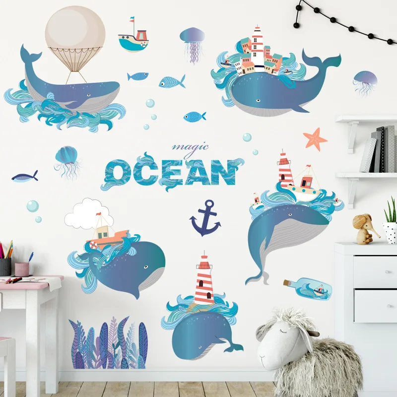 Kartun Paus Biru Stiker Dinding untuk Kamar Anak TK Kamar Mandi Tahan Air Vinyl Laut Dinding Decals Seni DIY Dekorasi Rumah|Wall Stickers| - AliExpress