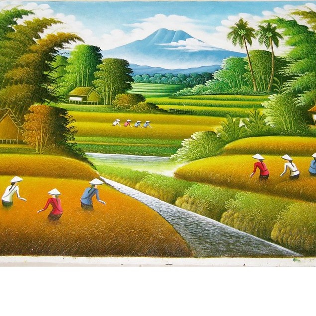 Lukisan Feng Shui Panen Padi / Pemandangan / Sawah Ukuran 135 X 85 Cm | Shopee Indonesia