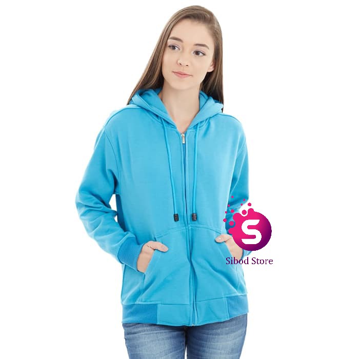Jual PROMO TERBATAS Vallenca Jaket Hoodie Wanita Polos Warna Biru Bayi Original XXXL Vallenca