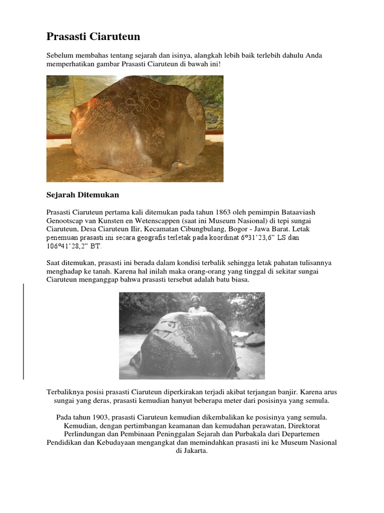 Prasasti Batu Tulis Ciaruteun, mei - juni 1863. Prasasti Ciaruteun diketahui berdasarkan laporan pimpinan Bataviaasch Genootscha… | Sejarah, Dasar sungai, Indonesia