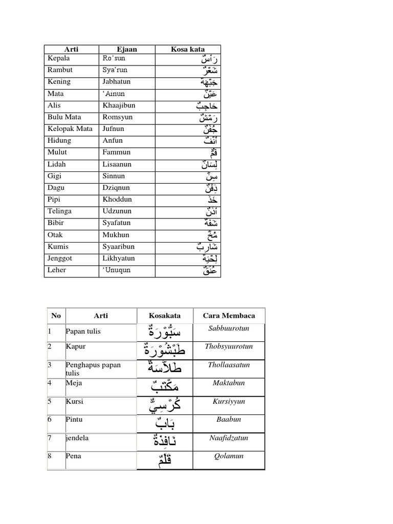 Bahasa Arab Posisi Dan Artinya | Guru Bahasa Arab