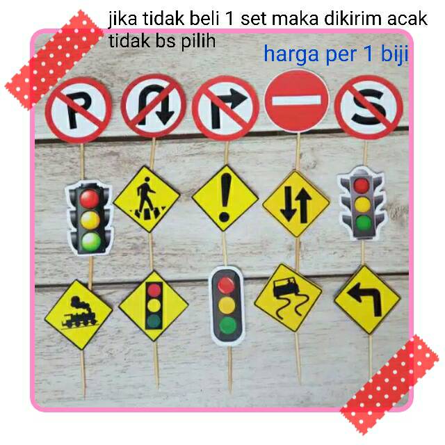 Topper cake hiasan kue ulang tahun motif rambu lalu lintas | Shopee Indonesia