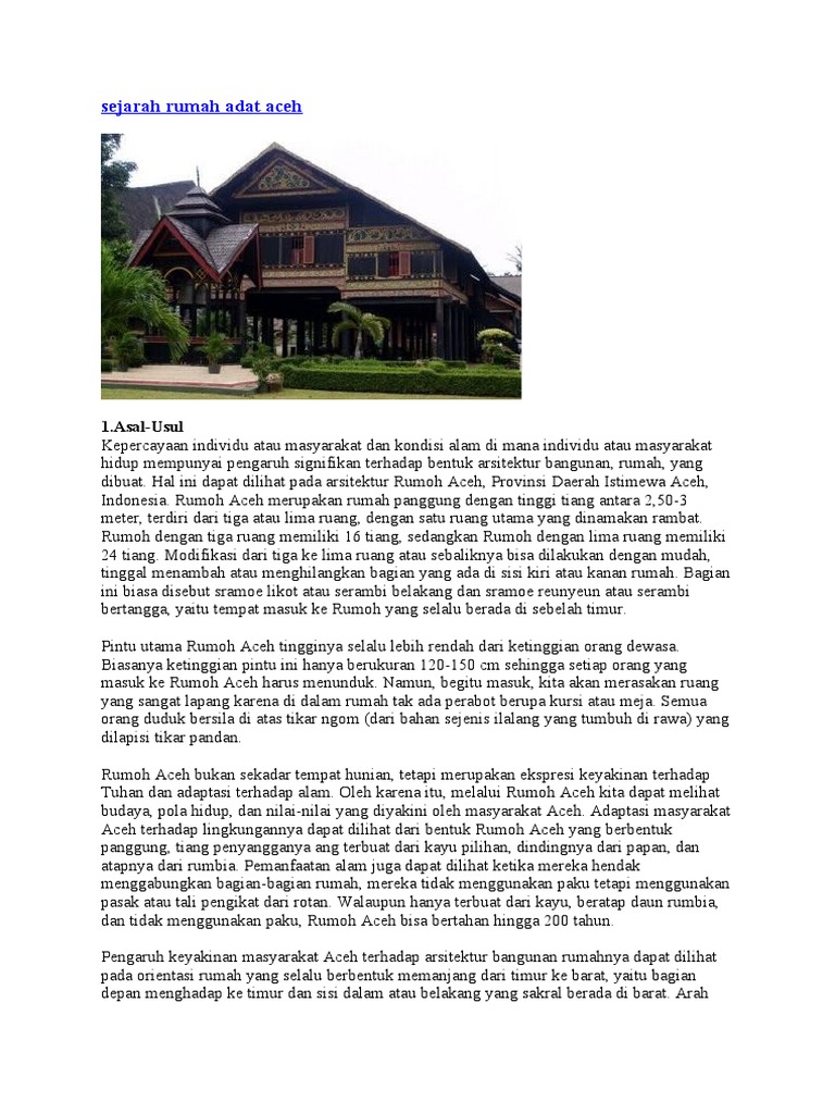 Rumah Adat Aceh | Arsitektur, Filosofi, Bagian dll - Guratgarut