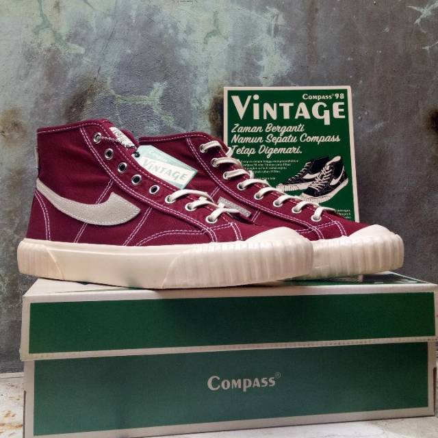 Sepatu Compass Vintage Hi Maroon | Shopee Indonesia