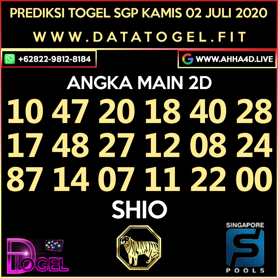 Ahha4D on Twitter: “Prediksi Togel Sgp Kamis 02 Juli 2020 ANGKA MAIN SGP 1 2 0 8 5 2D JITU SGP 10 47 20 18 40 28 17 48 27 12 08