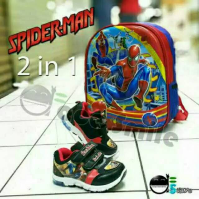 Pakat 2in1 Sepatu lampu/Tas anak SPIDER-MAN 3d gambar timbul | Shopee Indonesia