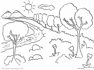 Gambar Mewarnai Pemandangan Hutan dan Sungai Untuk Anak Tk dan SD | Gambar Mewarnai