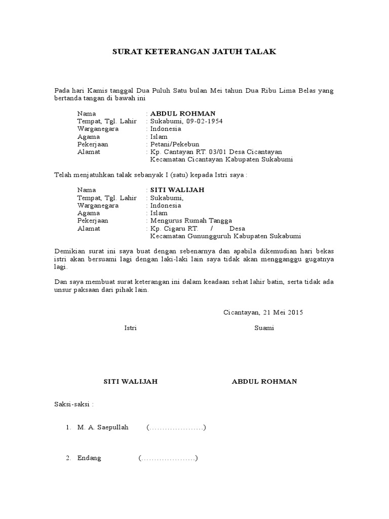 DOC) SURAT PERNYATAAN CERAI.docx | Egy Alfiansyah - Academia.edu