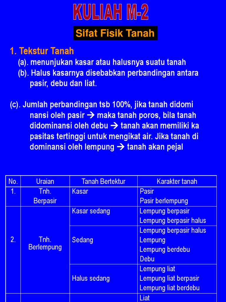 Tanah yg memiliki susunan perbandingan persentase liat 40% debu 10% dan pasir 50% dikatakan - Brainly.co.id