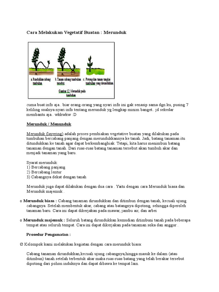DOC) PEMBIAKAN VEGETATIF DENGAN CARA MERUNDUK (LAYERAGE) DAN MENCANGKOK (AIR LAYERAGE) | Tria Sutarto - Academia.edu