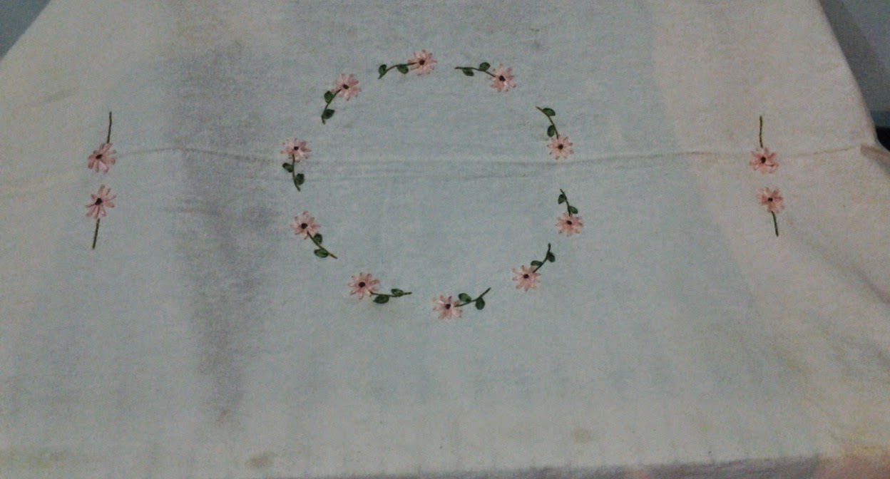 Contoh Motif Sulamana Benang Pada Taplak Meja beserta Teknik-Teknik Sulaman Yang di Gunakan - Tutorial Sulam Pita
