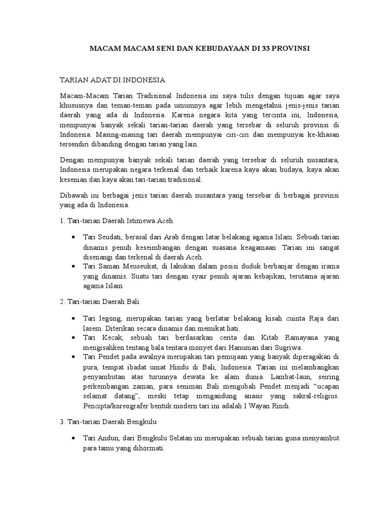 Nama 33 Provinsi Di Indonesia Tarian - [DOCX Document]