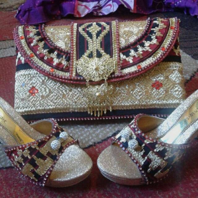 Jual Set Tas Pesta Mewah Gold dengan Sandal Pesta Nuansa Merah Kode SP6 dan C1 Size Jumbo | Surakarta | Jualo