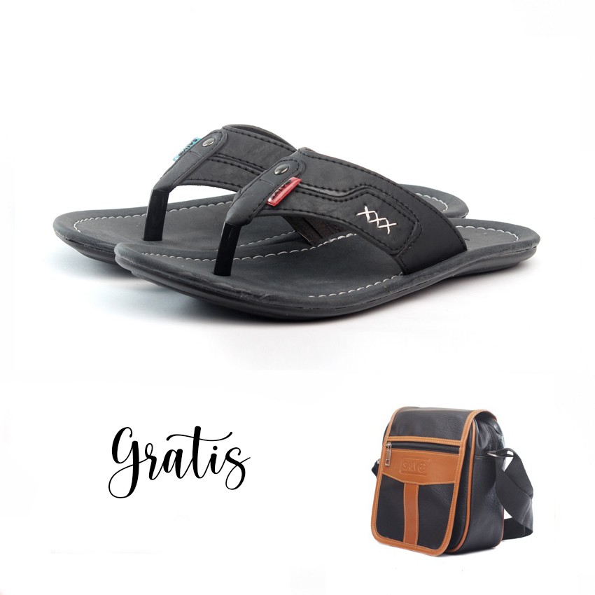 Salvo sandal kasual pria ZR hitam GRATIS tas selempang pria SV15 hitam | Shopee Indonesia