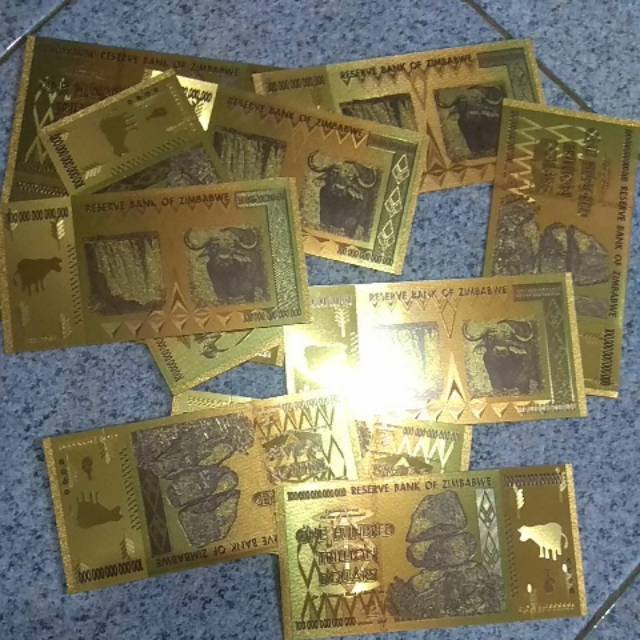Uang zimbabwe Gold foil Sovenir 1 Triliun milyar dollars America euro amerika | Shopee Indonesia