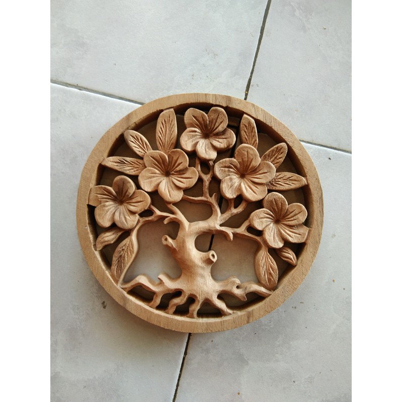 Hiasan Dinding Kayu Ukiran Bali motif Rangkaian Bunga Diameter 40cm | Shopee Indonesia