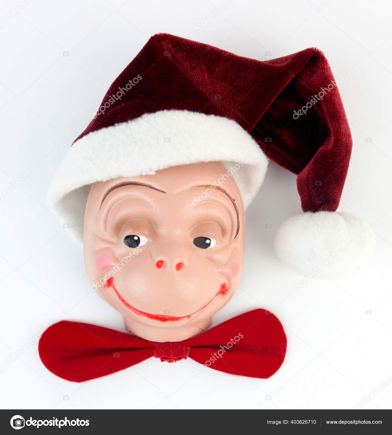 Mainan Konyol Wajah Monyet Mainan Mengenakan Pesta Santa Topi Dan — Stok Foto © ErrantPixels #403626710