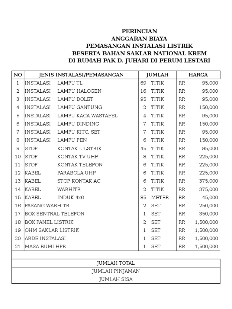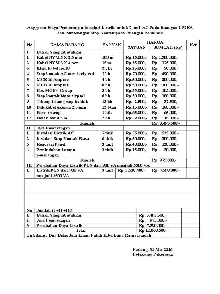 PDF) Anggaran Biaya Upah Instalasi Listrik | Reza Pahlepi - Academia.edu