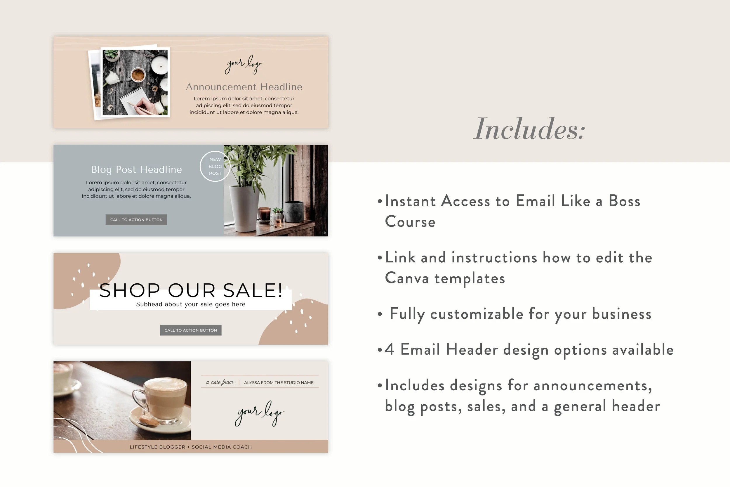 Email Like a Boss + Canva Header Template Bundle | Neutral Collection The Creative Template Shop