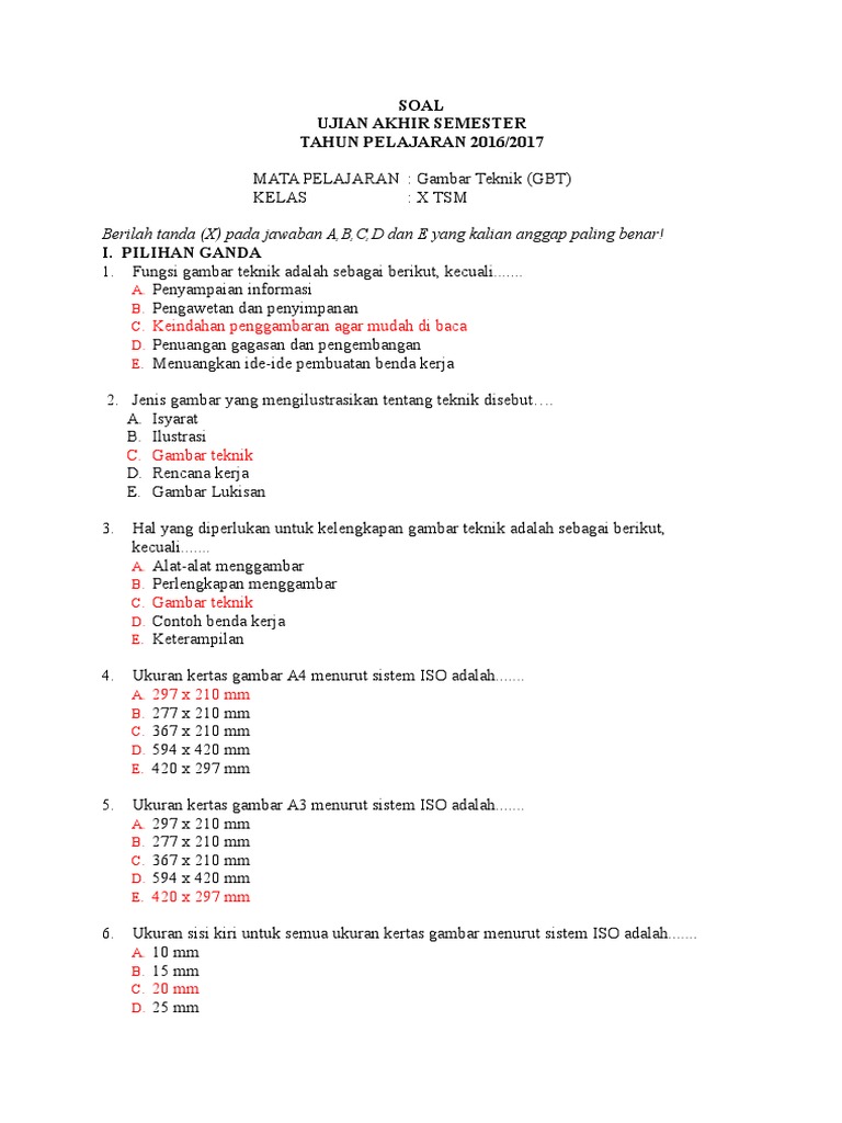 Ukuran Garis Tepi A3 Gambar Teknik - Soalan v