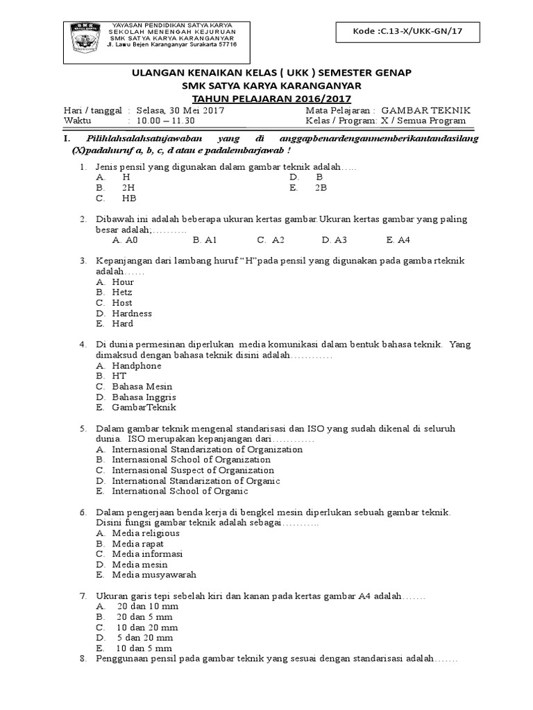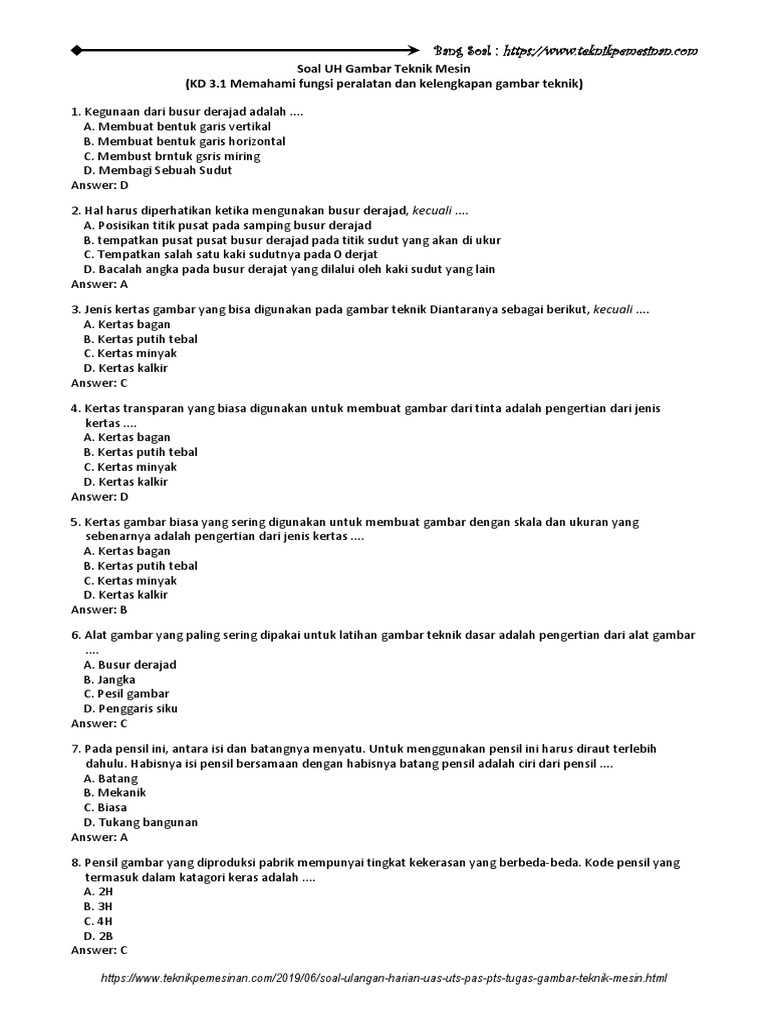 Soal UH Gambar Teknik Mesin KD 3.1