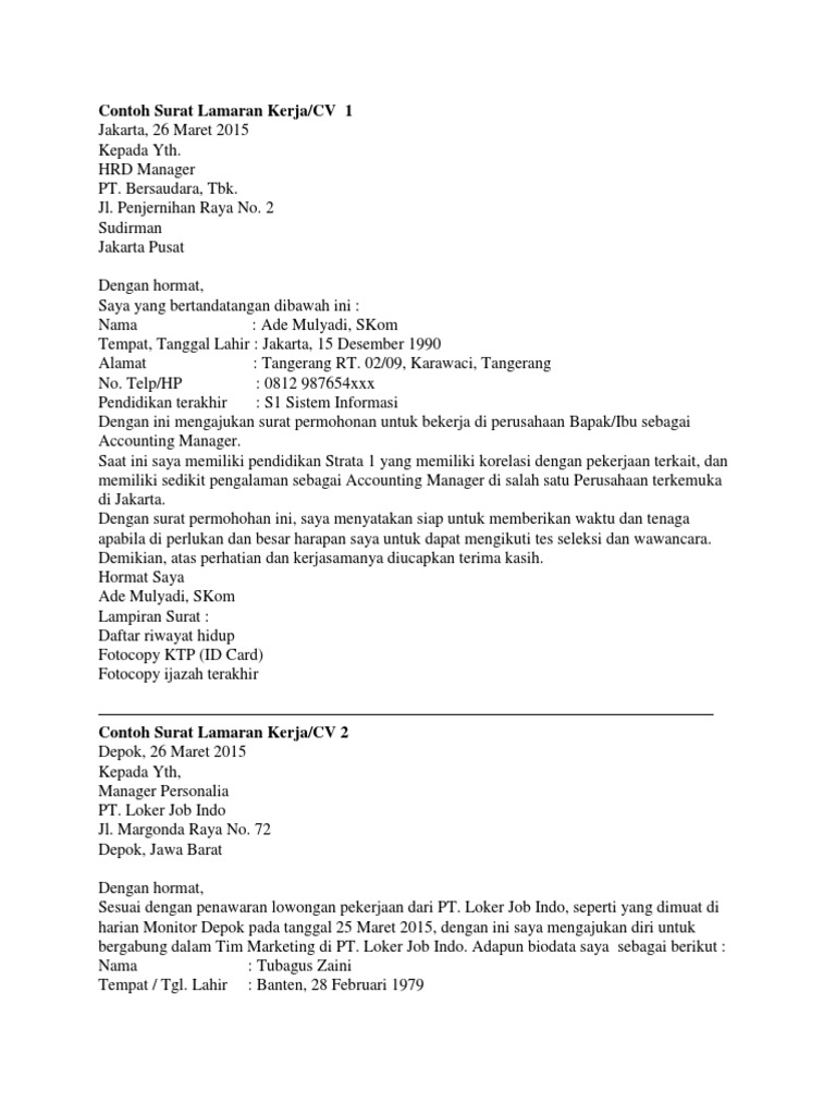 Contoh Surat Lamaran Pekerjaan Cv - BEST RESUME EXAMPLES