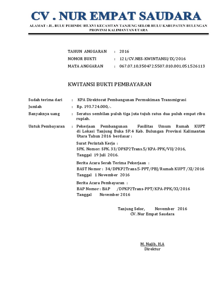 Kwitansi CV Nur Empat Saudara