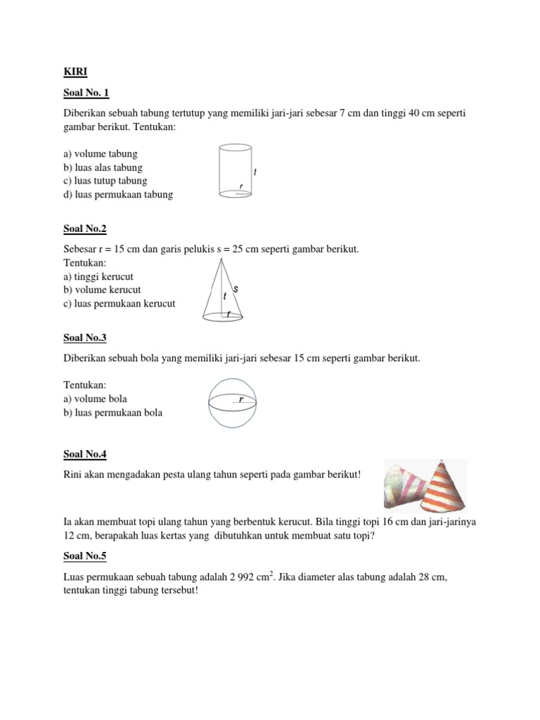 Soal Bangun Ruang Tabung atau Silinder plus Kunci Jawaban ~ Juragan Les