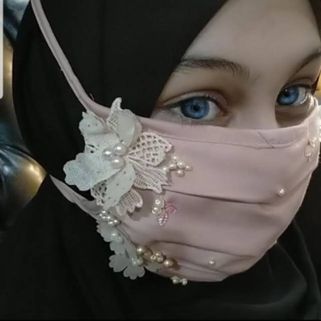 Masker hias mutiara bunga by ulya hijab | Shopee Indonesia