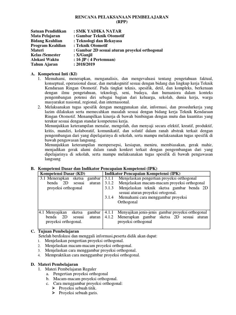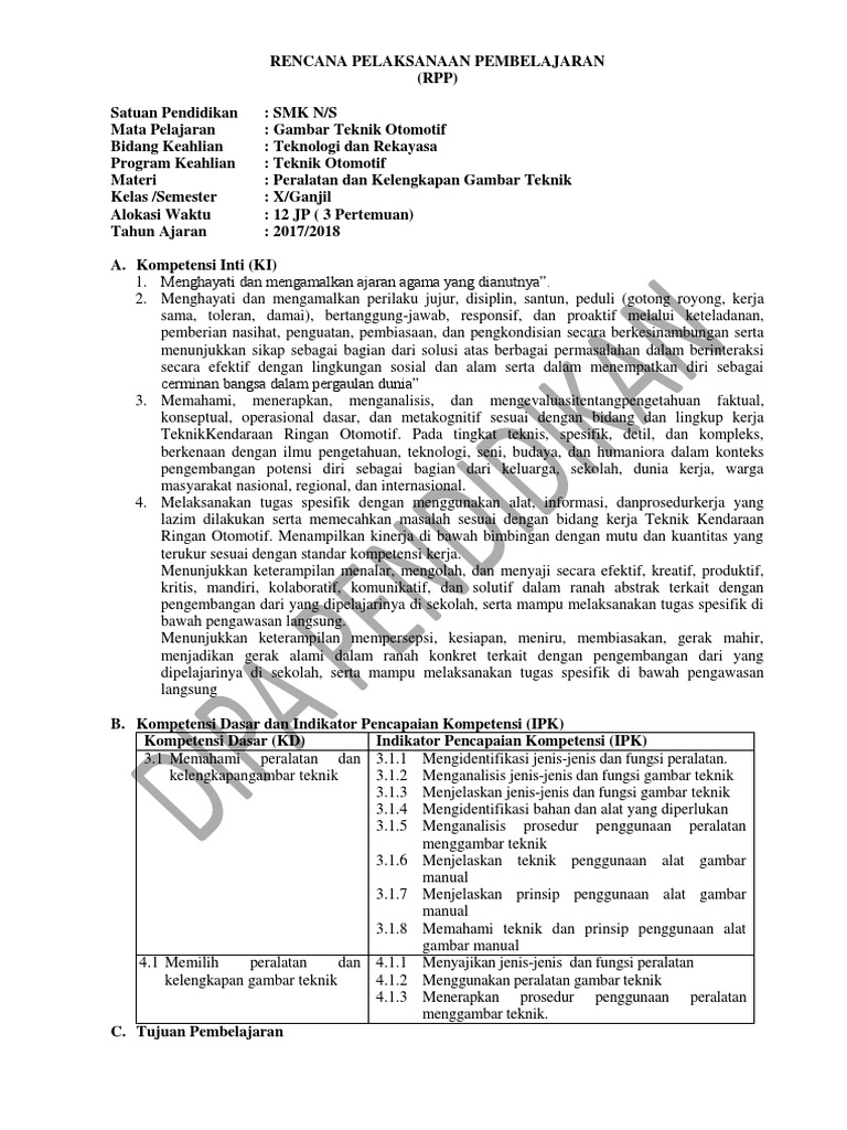 RPP Revisi 2017 Gambar Teknik Otomotif 10 SMK