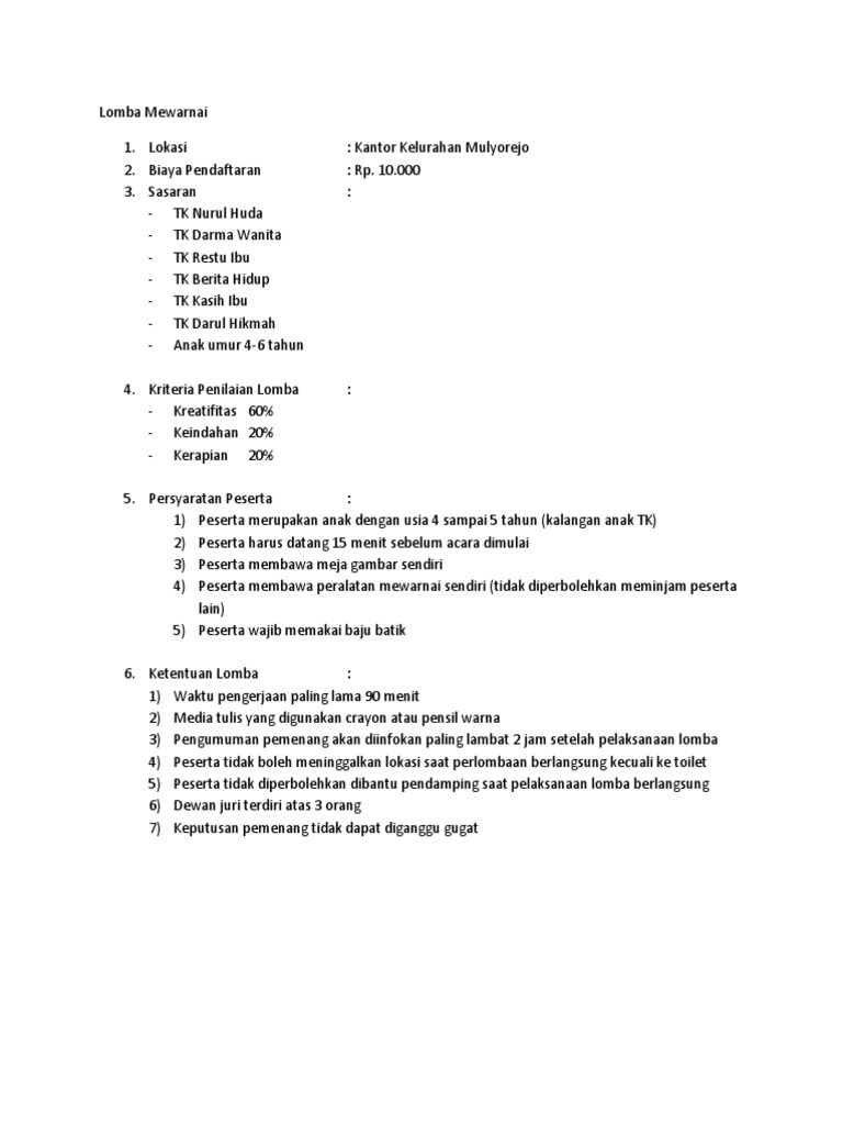 SOP Lomba Mewarnai, Gambar Dan Missing Lyrics