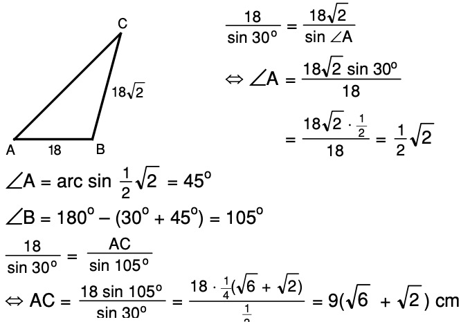 Pada segitiga ABC diketahui panjang sisi AB = 18 cm, sisi BC = 182, dan besar C = 30° - Mas Dayat