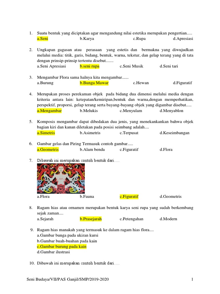 Seni Budaya:VII:PAS Ganjil:SMP:2019-2020