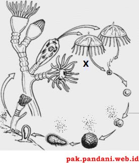Perhatikan daur hidup Obelia sp. berikut! Proses yang terjadi pada bagian X adalah…. - Blog Pak Pandani
