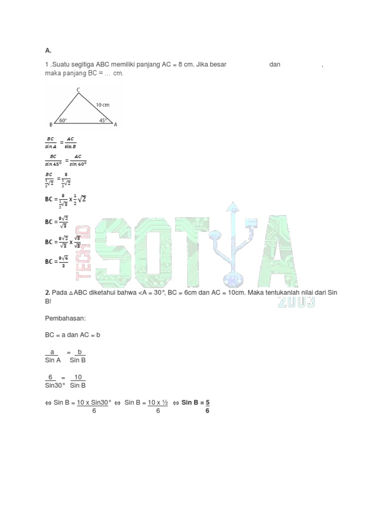 Contoh Soal Aturan Sinus, Cosinus Luas Segitiga Trigonometri