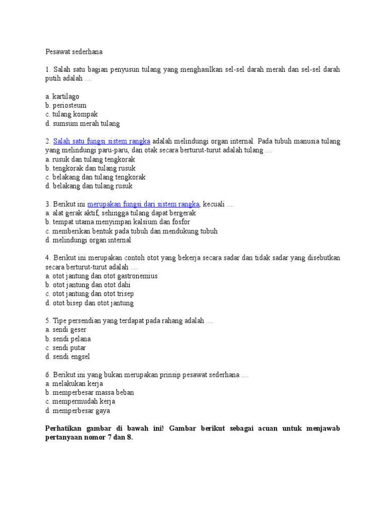 Latihan Soal Ipa Kelas 8 Sem 1 Rangka Otot Dan Pesawat Sederhana