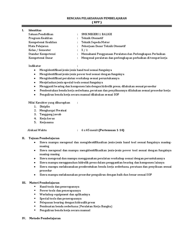 Download Rpp Pekerjaan Dasar Teknik Otomotif K13 Revisi | Teknik otomotif, Teknik, Kurikulum