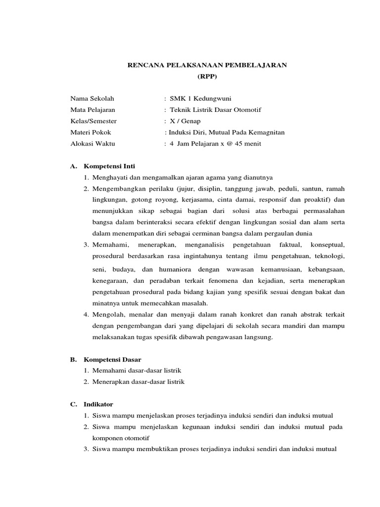 Download Rpp Pemeliharaan Kelistrikan Kendaraan Ringan | Kendaraan, Listrik, Kurikulum